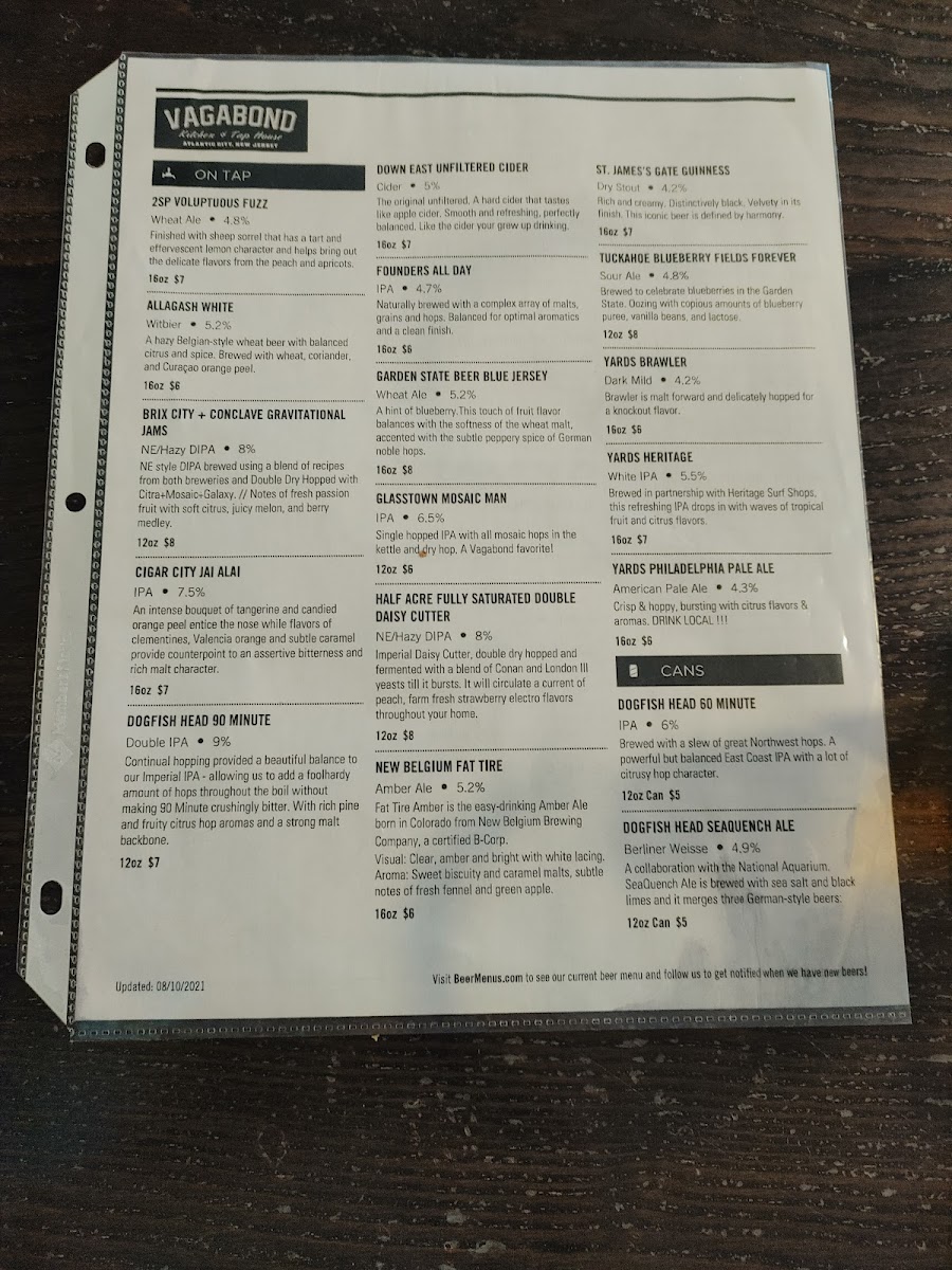 With its mix of great food, refreshing drinks, and welcoming atmosphere, Vagabond Kitchen & Tap House is a must-visit destination in Atlantic City. So, make your way over, and let them serve you something special that you'll be craving long after you've left the table.
