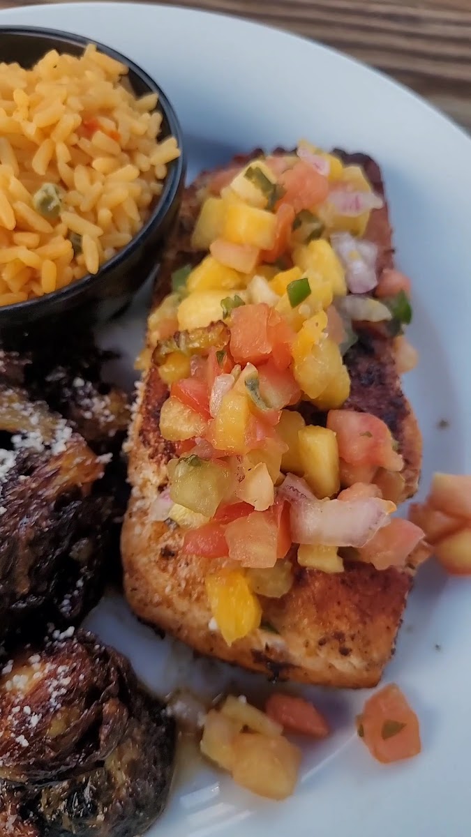 For those looking to indulge in heartier fare, the entrees are not to be missed. Picture yourself savoring the Crab Cake Dinner, featuring two succulent 4oz crab cakes topped with a spicy Cajun aioli, paired with rice and crisp brussel sprouts. Alternatively, the Salmon Dinner, a pan-seared fillet crowned with a refreshing pineapple salsa, is equally inviting, ensuring that each bite bursts with flavor. If you're in the mood for something interactive, the sizzling Fajitas come garnished with vibrant grilled onions and peppers, ready for you to assemble with warm tortillas and all the classic sides.